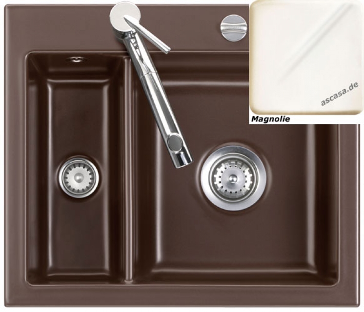 einbaubarDas Füllen und Ablaufen der Spüle wird über einen runden Drehknebel auf der Oberseite der Spüle vorgenommen. Dieser Knebel, Excenterbetätigung genannt, verschließt oder öffnet den Ablauf der Spüle, je nachdem in welche Richtung er gedreht wird. Der Griff in das Spülwasser entfällt somit.