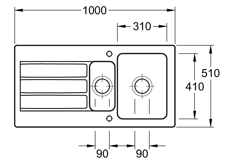 reversibelreversibel heißt: die Spüle läßt sich sowohl links als auch rechts herum einbauen; d. h. Sie können selbst entscheiden, ob Sie das Abtropfbecken auf der rechten oder auf der linken Seite haben möchten.