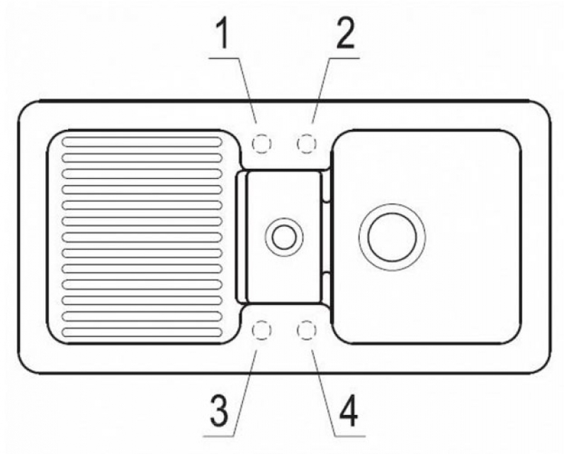 Option "Lochbohrungen durch Hersteller": Wenn Sie wünschen, dass aus Sicherheitsgründen die Lochbohrungen werksseitig vom Hersteller vorgenommen werden sollen, wählen Sie bitte diese Option. Hierfür benötigen wir von Ihnen die Nummern/Positionen des Hahnlochs/der Hahnlöcher, die V & B für Sie durchbohren soll. Bei der Spülenversion mit Handbetätigung benötigen Sie 1 Hahnlochbohrung für die Armatur, bei der Version mit Excenterbetätigung benötigen Sie 2 Lochbohrungen (Armatur und Excenter-Bedienung). Bitte beachten Sie hierzu die unten abgebildeten Maßzeichnungen, da die Positionen der Lochbohrungen bei reversiblen Spülen für die Becken-links und Becken-rechts-Versionen unterschiedlich sein können. Eine eventuelle 3. Lochbohrung für einen Seifenspender kann selbstverständlich zusätzlich gewählt werden.