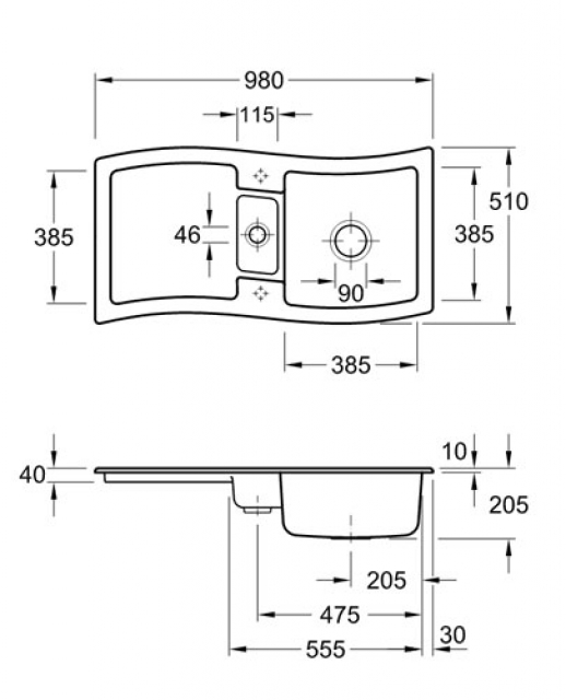 - diese Spüle ist nur als Einbau- bzw. Auflage-Spüle einbaubar; ein flächenbündiger Einbau oder der Einsatz als Unterbau-Spüle ist nicht möglich
