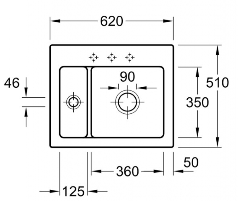Option "Lochbohrungen durch Hersteller": Wenn Sie wünschen, dass aus Sicherheitsgründen die Lochbohrungen werksseitig vom Hersteller vorgenommen werden sollen, wählen Sie bitte diese Option. Hierfür benötigen wir von Ihnen die Nummern/Positionen des Hahnlochs/der Hahnlöcher, die V & B für Sie durchbohren soll. Bei der Spülenversion mit Handbetätigung benötigen Sie 1 Hahnlochbohrung für die Armatur, bei der Version mit Excenterbetätigung benötigen Sie 2 Lochbohrungen (Armatur und Excenter-Bedienung). Bitte beachten Sie hierzu die unten abgebildeten Maßzeichnungen, da die Positionen der Lochbohrungen bei reversiblen Spülen für die Becken-links und Becken-rechts-Versionen unterschiedlich sein können. Eine eventuelle 3. Lochbohrung für einen Seifenspender kann selbstverständlich zusätzlich gewählt werden.