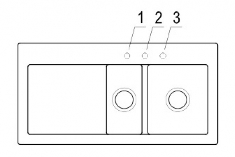 Option "Lochbohrungen durch Hersteller": Wenn Sie wünschen, dass aus Sicherheitsgründen die Lochbohrungen werksseitig vom Hersteller vorgenommen werden sollen, wählen Sie bitte diese Option. Hierfür benötigen wir von Ihnen die Nummern/Positionen des Hahnlochs/der Hahnlöcher, die V & B für Sie durchbohren soll. Bei der Spülenversion mit Handbetätigung benötigen Sie 1 Hahnlochbohrung für die Armatur, bei der Version mit Excenterbetätigung benötigen Sie 2 Lochbohrungen (Armatur und Excenter-Bedienung). Bitte beachten Sie hierzu die unten abgebildeten Maßzeichnungen, da die Positionen der Lochbohrungen bei reversiblen Spülen für die Becken-links und Becken-rechts-Versionen unterschiedlich sein können. Eine eventuelle 3. Lochbohrung für einen Seifenspender kann selbstverständlich zusätzlich gewählt werden.