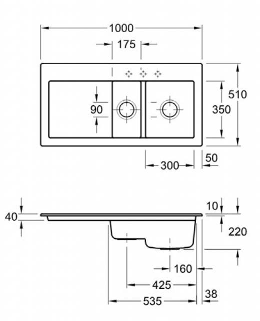 Option "Lochbohrungen durch Hersteller": Wenn Sie wünschen, dass aus Sicherheitsgründen die Lochbohrungen werksseitig vom Hersteller vorgenommen werden sollen, wählen Sie bitte diese Option. Hierfür benötigen wir von Ihnen die Nummern/Positionen des Hahnlochs/der Hahnlöcher, die V & B für Sie durchbohren soll. Bei der Spülenversion mit Handbetätigung benötigen Sie 1 Hahnlochbohrung für die Armatur, bei der Version mit Excenterbetätigung benötigen Sie 2 Lochbohrungen (Armatur und Excenter-Bedienung). Bitte beachten Sie hierzu die unten abgebildeten Maßzeichnungen, da die Positionen der Lochbohrungen bei reversiblen Spülen für die Becken-links und Becken-rechts-Versionen unterschiedlich sein können. Eine eventuelle 3. Lochbohrung für einen Seifenspender kann selbstverständlich zusätzlich gewählt werden.
