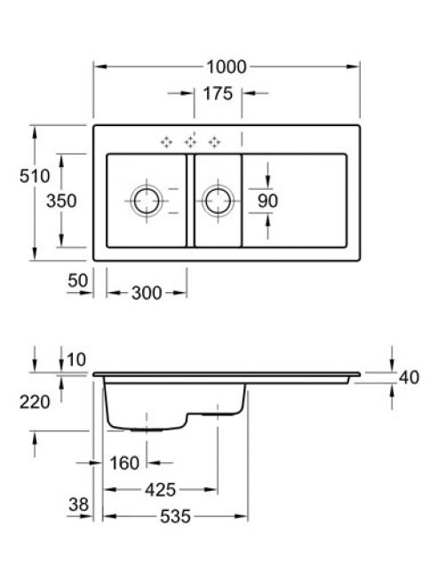 Option "Lochbohrungen durch Hersteller": Wenn Sie wünschen, dass aus Sicherheitsgründen die Lochbohrungen werksseitig vom Hersteller vorgenommen werden sollen, wählen Sie bitte diese Option. Hierfür benötigen wir von Ihnen die Nummern/Positionen des Hahnlochs/der Hahnlöcher, die V & B für Sie durchbohren soll. Bei der Spülenversion mit Handbetätigung benötigen Sie 1 Hahnlochbohrung für die Armatur, bei der Version mit Excenterbetätigung benötigen Sie 2 Lochbohrungen (Armatur und Excenter-Bedienung). Bitte beachten Sie hierzu die unten abgebildeten Maßzeichnungen, da die Positionen der Lochbohrungen bei reversiblen Spülen für die Becken-links und Becken-rechts-Versionen unterschiedlich sein können. Eine eventuelle 3. Lochbohrung für einen Seifenspender kann selbstverständlich zusätzlich gewählt werden.