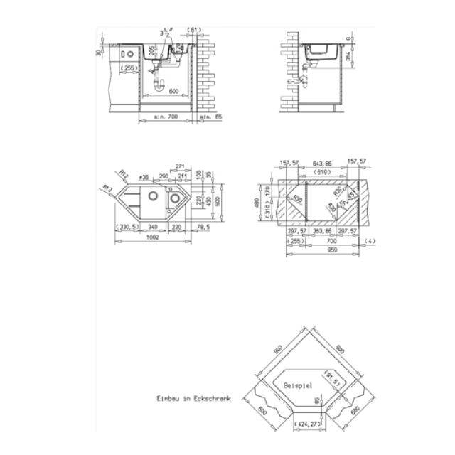 • Passend für Eckschränke ab Schenkelmaß 90/90 cm oder Unterschränke ab 70 cm.