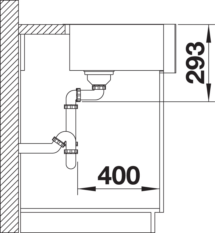 • Ab- und Überlaufgarnitur mit Raumsparrohr
