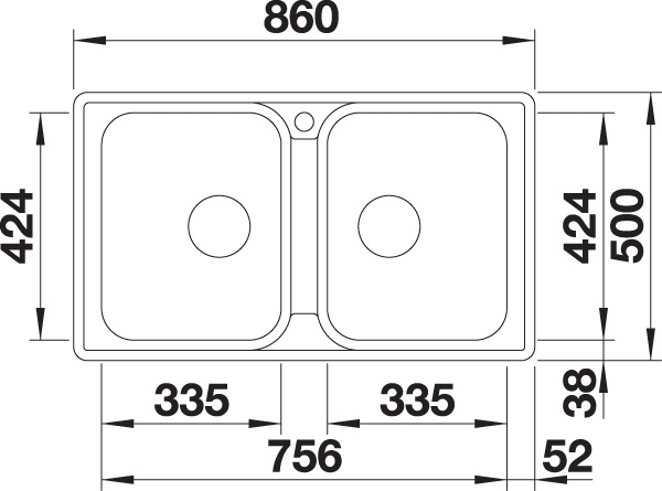 Abmessungen 860 x 500 mm
