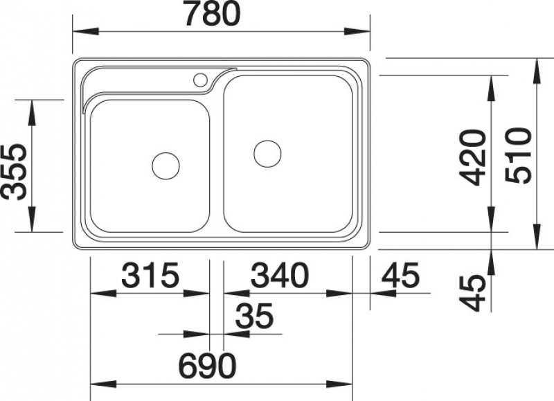 Einbauspüle Blancoclassic 8, Edelstahl Seidenglanz, Hauptbecken rechts