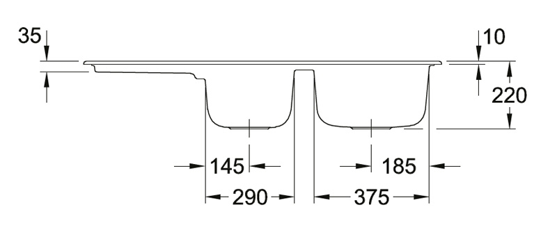 - Spülenmaße: L x B 1160 x 510 mm