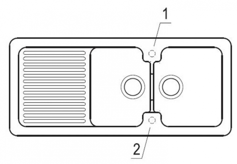 Option "Lochbohrungen durch Hersteller": Wenn Sie wünschen, dass aus Sicherheitsgründen die Lochbohrungen werksseitig vom Hersteller vorgenommen werden sollen, wählen Sie bitte diese Option. Hierfür benötigen wir von Ihnen die Nummern/Positionen des Hahnlochs/der Hahnlöcher, die V & B für Sie durchbohren soll. Bei der Spülenversion mit Handbetätigung benötigen Sie 1 Hahnlochbohrung für die Armatur, bei der Version mit Excenterbetätigung benötigen Sie 2 Lochbohrungen (Armatur und Excenter-Bedienung). Bitte beachten Sie hierzu die unten abgebildeten Maßzeichnungen, da die Positionen der Lochbohrungen bei reversiblen Spülen für die Becken-links und Becken-rechts-Versionen unterschiedlich sein können.