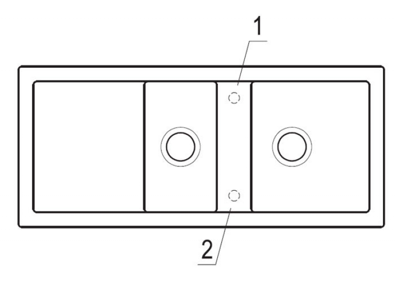 Option "Lochbohrungen durch Hersteller": Wenn Sie wünschen, dass aus Sicherheitsgründen die Lochbohrungen werksseitig vom Hersteller vorgenommen werden sollen, wählen Sie bitte diese Option. Hierfür benötigen wir von Ihnen die Nummern/Positionen des Hahnlochs/der Hahnlöcher, die V & B für Sie durchbohren soll. Bei der Spülenversion mit Handbetätigung benötigen Sie 1 Hahnlochbohrung für die Armatur, bei der Version mit Excenterbetätigung benötigen Sie 2 Lochbohrungen (Armatur und Excenter-Bedienung). Bitte beachten Sie hierzu die unten abgebildeten Maßzeichnungen, da die Positionen der Lochbohrungen bei reversiblen Spülen für die Becken-links und Becken-rechts-Versionen unterschiedlich sein können.