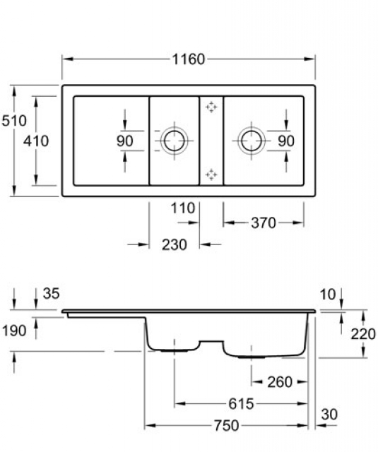 - diese Spüle ist nur als Einbau- bzw. Auflage-Spüle einbaubar; ein flächenbündiger Einbau oder der Einsatz als Unterbau-Spüle ist nicht möglich