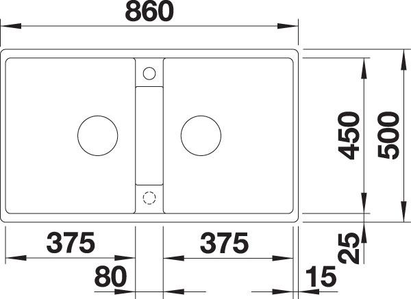 • Beckengröße: 375 x 450 + 375 x 450 mm