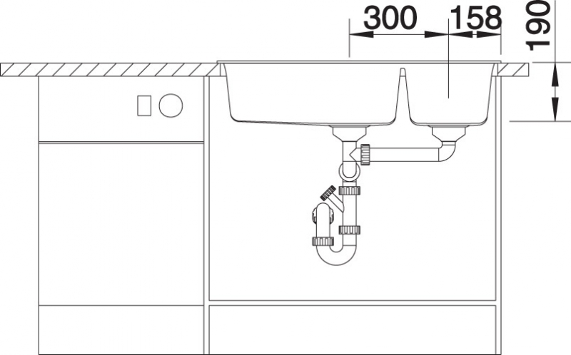 maximale Beckenkapazität durch übergroßes Hauptbecken und zweites geräumiges Arbeitsbecken