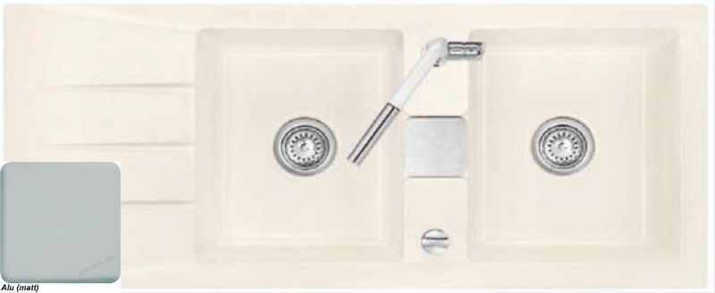 - diese Spüle ist nur als Einbau- bzw. Auflage-Spüle einbaubar; ein flächenbündiger Einbau oder der Einsatz als Unterbau-Spüle ist nicht möglich! Es gibt von diesem Modell jedoch eine Schwester-Variante, die dafür vorgesehen ist (am Ende "F" für die flächenbündig einzubauende Variante)