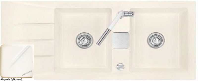 - diese Spüle ist nur als Einbau- bzw. Auflage-Spüle einbaubar; ein flächenbündiger Einbau oder der Einsatz als Unterbau-Spüle ist nicht möglich! Es gibt von diesem Modell jedoch eine Schwester-Variante, die dafür vorgesehen ist (am Ende "F" für die flächenbündig einzubauende Variante)