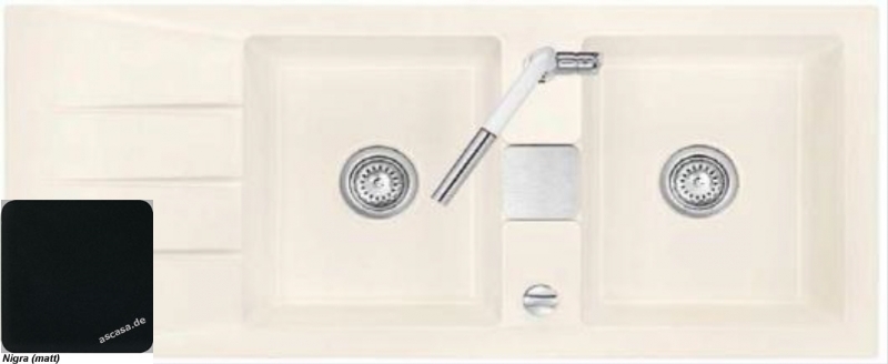 - diese Spüle ist nur als Einbau- bzw. Auflage-Spüle einbaubar; ein flächenbündiger Einbau oder der Einsatz als Unterbau-Spüle ist nicht möglich! Es gibt von diesem Modell jedoch eine Schwester-Variante, die dafür vorgesehen ist (am Ende "F" für die flächenbündig einzubauende Variante)