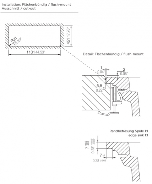 • diese Spüle ist nur als flächenbündige Spüle einbaubar, ein Einbau als Einbau- bzw. Auflage-Spüle oder der Einsatz als Unterbau-Spüle ist nicht möglich! Einbau nur in Kombination mit Stein- oder Granitarbeitsplatten möglich; Es gibt von diesem Modell jedoch Schwester-Varianten, die dafür vorgesehen sind (anstelle "FB" am Ende "A" für die Einbau- bzw. Auflage Variante und "U" für das Unterbau-Modell)
