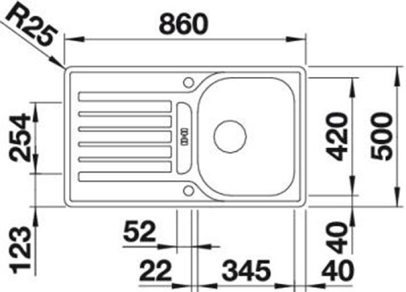 • Einbauspüle für den 45 cm-Spülenunterschrank in Flachrand-Ausführung