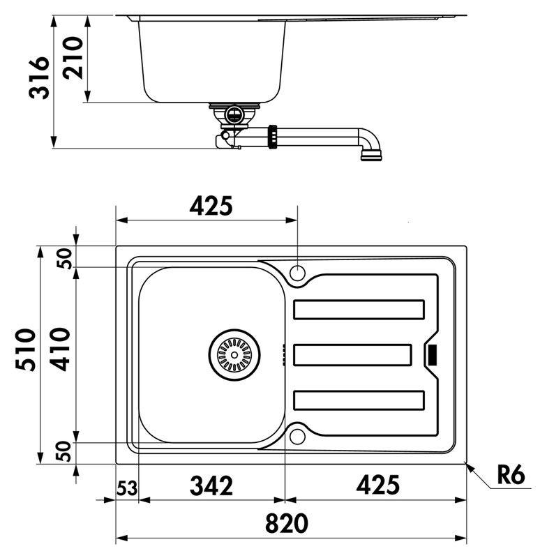 • Spüle mit flachem Rand, auch geeignet für den flächenbündigen Einbau