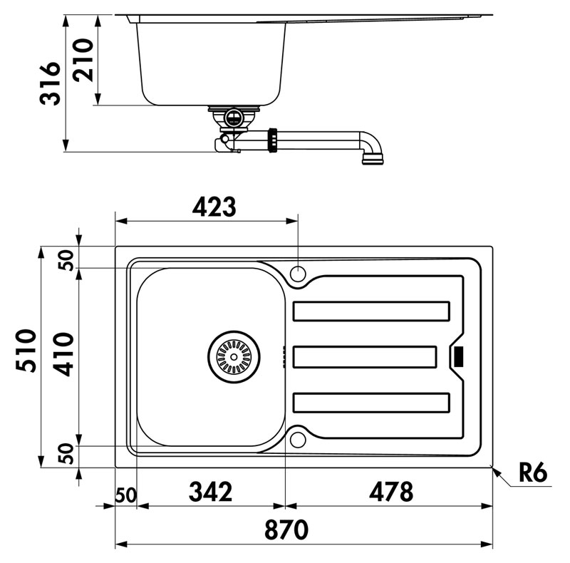 • Spüle mit flachem Rand, auch geeignet für den flächenbündigen Einbau