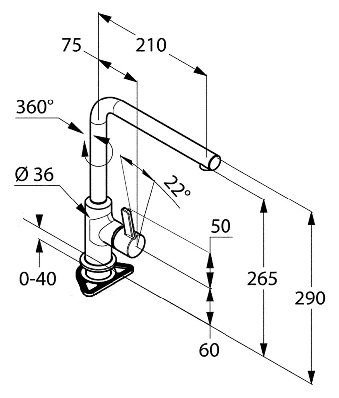 • Einhebelmischer. Mit schwenkbarem Auslauf, seitlichem kurzem Hebel, Keramikkartusche und Laminarstrahlregler