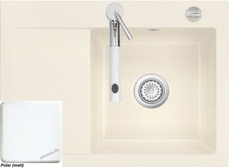 • diese Spüle ist nur als flächenbündige Spüle einbaubar (somit nur in Kombination mit Stein- oder Granitarbeitsplatten); ein Einbau als Einbau- bzw. Auflage-Spüle oder der Einsatz als Unterbau-Spüle ist nicht möglich! Es gibt von diesem Modell jedoch eine Schwester-Variante, die für den Einbau vorgesehen ist