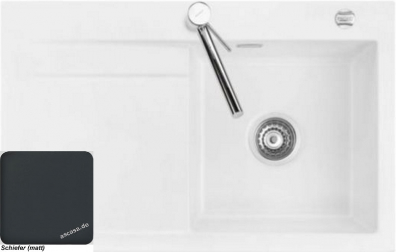 • diese Spüle ist nur als flächenbündige Spüle einbaubar (somit nur in Kombination mit Stein- oder Granitarbeitsplatten); ein Einbau als Einbau- bzw. Auflage-Spüle oder der Einsatz als Unterbau-Spüle ist nicht möglich! Es gibt von diesem Modell jedoch eine Schwester-Variante, die für den Einbau vorgesehen ist