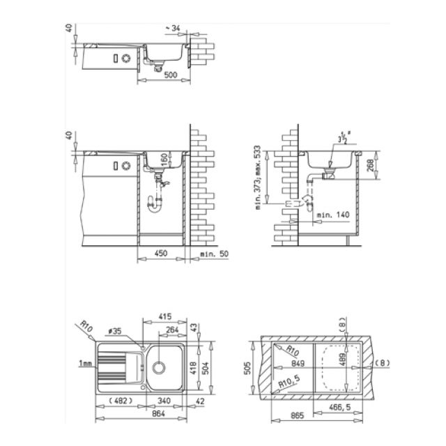 reversibel heißt: die Spüle läßt sich sowohl links als auch rechts herum einbauen; d. h. Sie können selbst entscheiden, ob Sie das Abtropfbecken auf der rechten oder auf der linken Seite haben möchten.