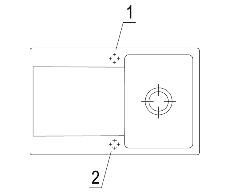 Option "Lochbohrungen durch Hersteller": Wenn Sie wünschen, dass aus Sicherheitsgründen die Lochbohrungen werksseitig vom Hersteller vorgenommen werden sollen, wählen Sie bitte diese Option. Hierfür benötigen wir von Ihnen die Nummern/Positionen des Hahnlochs/der Hahnlöcher, die V & B für Sie durchbohren soll. Bei der Spülenversion mit Handbetätigung benötigen Sie 1 Hahnlochbohrung für die Armatur, bei der Version mit Excenterbetätigung benötigen Sie 2 Lochbohrungen (Armatur und Excenter-Bedienung). Bitte beachten Sie hierzu die unten abgebildeten Maßzeichnungen, da die Positionen der Lochbohrungen bei reversiblen Spülen für die Becken-links und Becken-rechts-Versionen unterschiedlich sein können. Eine eventuelle 3. Lochbohrung für einen Seifenspender kann selbstverständlich zusätzlich gewählt werden.