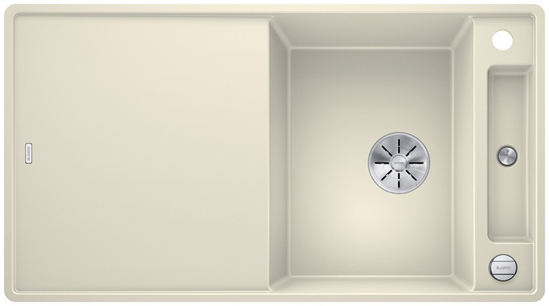 • Die Spüle Blancoaxia III 5 S-F ist in den Farbvarianten "anthrazit", "felsgrau", "alumetallic", "weiß", "jasmin" und "cafe" erhältlich.