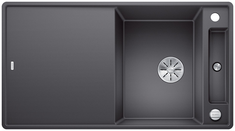 • Die Spüle Blancoaxia III 5 S-F ist in den Farbvarianten "anthrazit", "felsgrau", "alumetallic", "weiß", "jasmin" und "cafe" erhältlich.