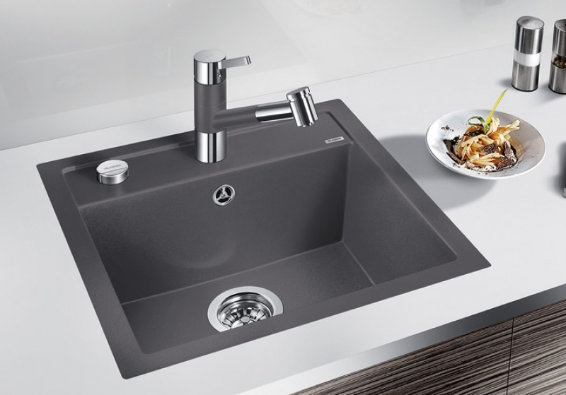 Die Spüle Blancodalago 5-F ist in den Farbvarianten "anthrazit", "felsgrau", "alumetallic", "weiß", "jasmin" und "cafe" erhältlich.