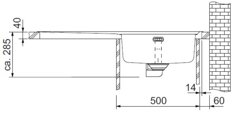 Einbauspüle EPOS SlimTop, ab 50 cm, Edelstahl glatt, Integral-Siebkorb-Excenterventil, Ausschnitt-Schablone, Becken links