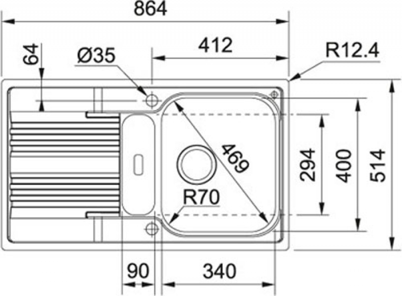 • Becken 340/400/180 mm