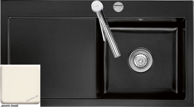 • diese Spüle ist nur als flächenbündige Spüle einbaubar (somit nur in Kombination mit Stein- oder Granitarbeitsplatten); ein Einbau als Einbau- bzw. Auflage-Spüle oder der Einsatz als Unterbau-Spüle ist nicht möglich! Es gibt von diesem Modell jedoch eine Schwester-Variante, die für den Einbau vorgesehen ist