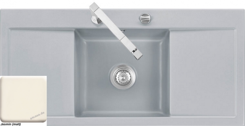 • diese Spüle ist nur als flächenbündige Spüle einbaubar (somit nur in Kombination mit Stein- oder Granitarbeitsplatten); ein Einbau als Einbau- bzw. Auflage-Spüle oder der Einsatz als Unterbau-Spüle ist nicht möglich! Es gibt von diesem Modell jedoch eine Schwester-Variante, die für den Einbau vorgesehen ist