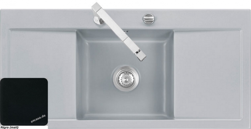 • diese Spüle ist nur als flächenbündige Spüle einbaubar (somit nur in Kombination mit Stein- oder Granitarbeitsplatten); ein Einbau als Einbau- bzw. Auflage-Spüle oder der Einsatz als Unterbau-Spüle ist nicht möglich! Es gibt von diesem Modell jedoch eine Schwester-Variante, die für den Einbau vorgesehen ist