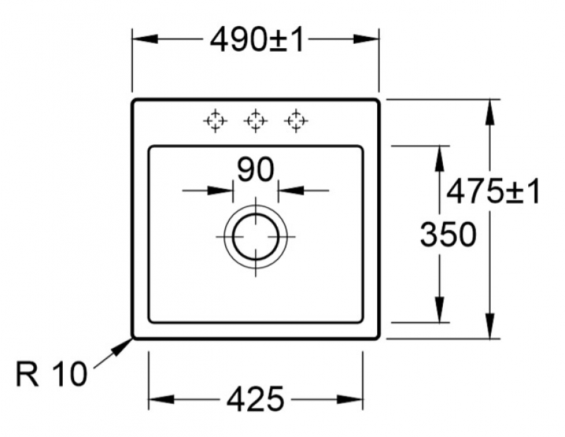 (Bitte beachten Sie vor dem Ausschnitt der Arbeitsplatte die Montageanleitung der Spüle) - Spülenmaße: L x B 490 (+-1) x 475 (+-1) mm
