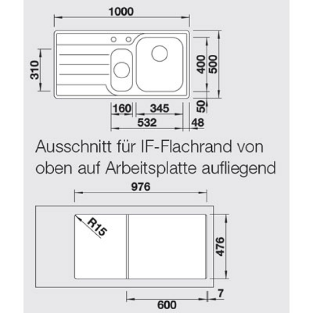 Abmessungen 1000 x 500 mm