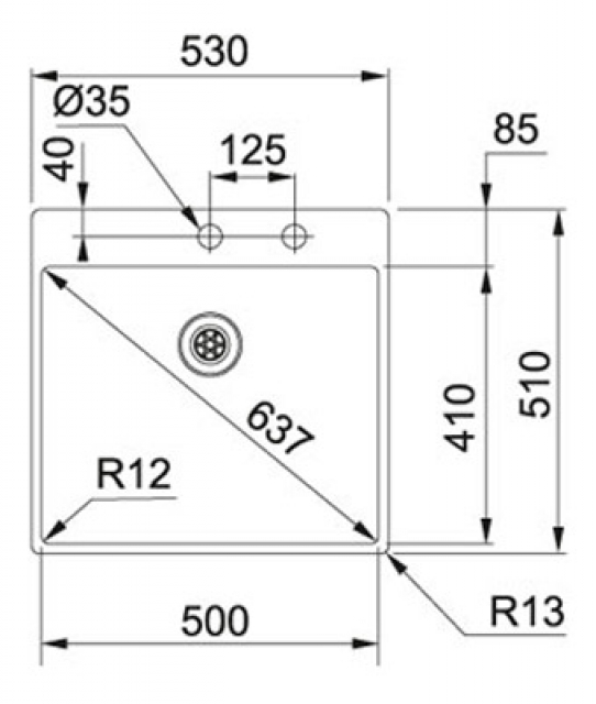 Franke Box BXX 210-50 TL Einbau/Auflage-Spüle, ab 60 cm Unterschrank, Edelstahl glatt, Integralablauf, Drehknopf rund Edelstahloptik