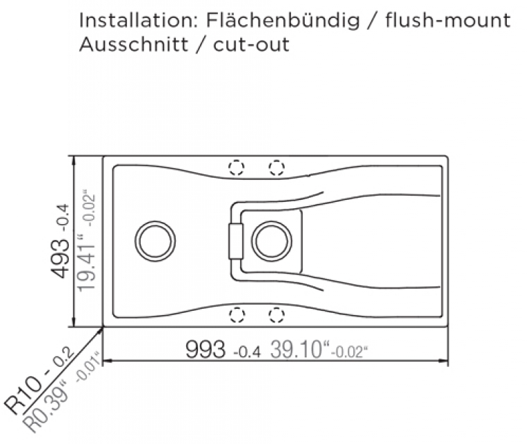 reversibel heißt: die Spüle läßt sich sowohl links als auch rechts herum einbauen; d. h. Sie können selbst entscheiden, ob Sie das Abtropfbecken auf der rechten oder auf der linken Seite haben möchten.