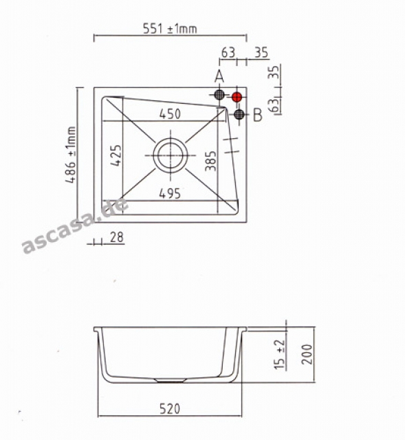Das Füllen und Ablaufen der Spüle wird über einen runden Drehknebel auf der Oberseite der Spüle vorgenommen. Dieser Knebel, Excenterbetätigung genannt, verschließt oder öffnet den Ablauf der Spüle, je nachdem in welche Richtung er gedreht wird. Der Griff in das Spülwasser entfällt somit.