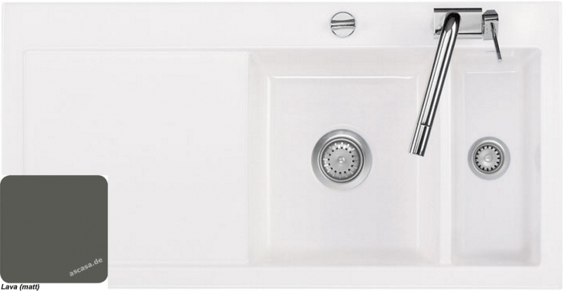 • diese Spüle ist nur als flächenbündige Spüle einbaubar (somit nur in Kombination mit Stein- oder Granitarbeitsplatten); ein Einbau als Einbau- bzw. Auflage-Spüle oder der Einsatz als Unterbau-Spüle ist nicht möglich! Es gibt von diesem Modell jedoch eine Schwester-Variante, die für den Einbau vorgesehen ist