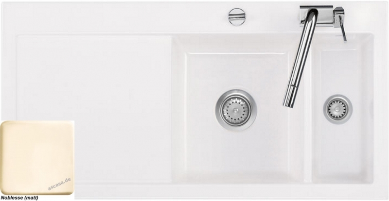 • diese Spüle ist nur als flächenbündige Spüle einbaubar (somit nur in Kombination mit Stein- oder Granitarbeitsplatten); ein Einbau als Einbau- bzw. Auflage-Spüle oder der Einsatz als Unterbau-Spüle ist nicht möglich! Es gibt von diesem Modell jedoch eine Schwester-Variante, die für den Einbau vorgesehen ist