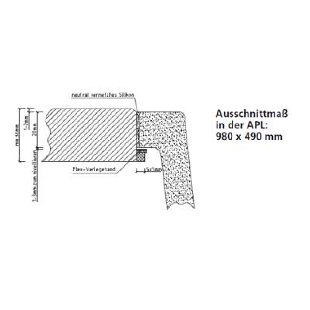 • Ausschnittmaß in der Arbeitsplatte: 980 X 490 mm