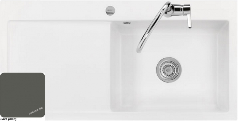 • diese Spüle ist nur als flächenbündige Spüle einbaubar (somit nur in Kombination mit Stein- oder Granitarbeitsplatten); ein Einbau als Einbau- bzw. Auflage-Spüle oder der Einsatz als Unterbau-Spüle ist nicht möglich! Es gibt von diesem Modell jedoch eine Schwester-Variante, die für den Einbau vorgesehen ist