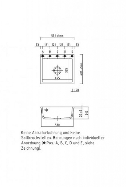 • Der Auslieferungszustand der Spüle beinhaltet KEINE Lochbohrung. Es sind keine Sollbruchstellen vorhanden; eine oder weitere Durchbohrung(en) kann nur im Werk des Herstellers Systemceram vorgenommen werden. Bitte geben Sie uns dafür exakt die von Ihnen gewünschte Position auf der Spüle an, gern auch anhand einer separaten Email, oder nehmen Sie diesbezüglich mit uns Kontakt auf. Bitte beachten Sie auch, daß Sie durch diese persönliche Positionierung der Lochbohrung einen für Sie individualisierten Artikel bestellen und erwerben, der nur für Sie speziell angefertigt wird. Diese Individualisierung und die damit verbundene nicht gegebene Möglichkeit eines anderweitigen Verkaufes durch uns kann zu einem Nicht-Wirksamwerden des Widerrufrechtes führen, welches individualisierte Produkte ausdrücklich ausnimmt. (Auf eine mit Produktmängeln zusammenhängende Reklamation hat dies selbstverständlich keinen Einfluß). Bitte sprechen Sie uns ggfs. hierauf an.