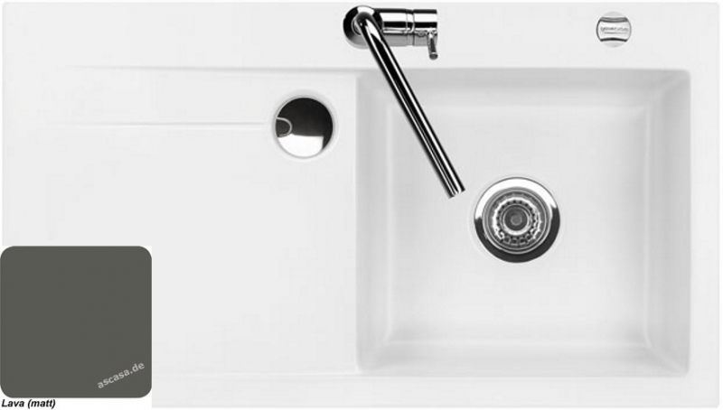 • diese Spüle ist nur als flächenbündige Spüle einbaubar (somit nur in Kombination mit Stein- oder Granitarbeitsplatten); ein Einbau als Einbau- bzw. Auflage-Spüle oder der Einsatz als Unterbau-Spüle ist nicht möglich! Es gibt von diesem Modell jedoch eine Schwester-Variante, die für den Einbau vorgesehen ist