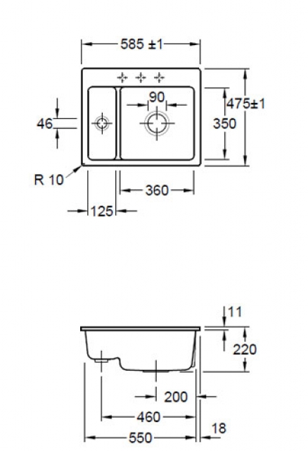 Option "Lochbohrungen durch Hersteller": Wenn Sie wünschen, dass aus Sicherheitsgründen die Lochbohrungen werksseitig vom Hersteller vorgenommen werden sollen, wählen Sie bitte diese Option. Hierfür benötigen wir von Ihnen die Nummern/Positionen des Hahnlochs/der Hahnlöcher, die V & B für Sie durchbohren soll. Bei der Spülenversion mit Handbetätigung benötigen Sie 1 Hahnlochbohrung für die Armatur, bei der Version mit Excenterbetätigung benötigen Sie 2 Lochbohrungen (Armatur und Excenter-Bedienung). Bitte beachten Sie hierzu die unten abgebildeten Maßzeichnungen, da die Positionen der Lochbohrungen bei reversiblen Spülen für die Becken-links und Becken-rechts-Versionen unterschiedlich sein können. Eine eventuelle 3. Lochbohrung für einen Seifenspender kann selbstverständlich zusätzlich gewählt werden.